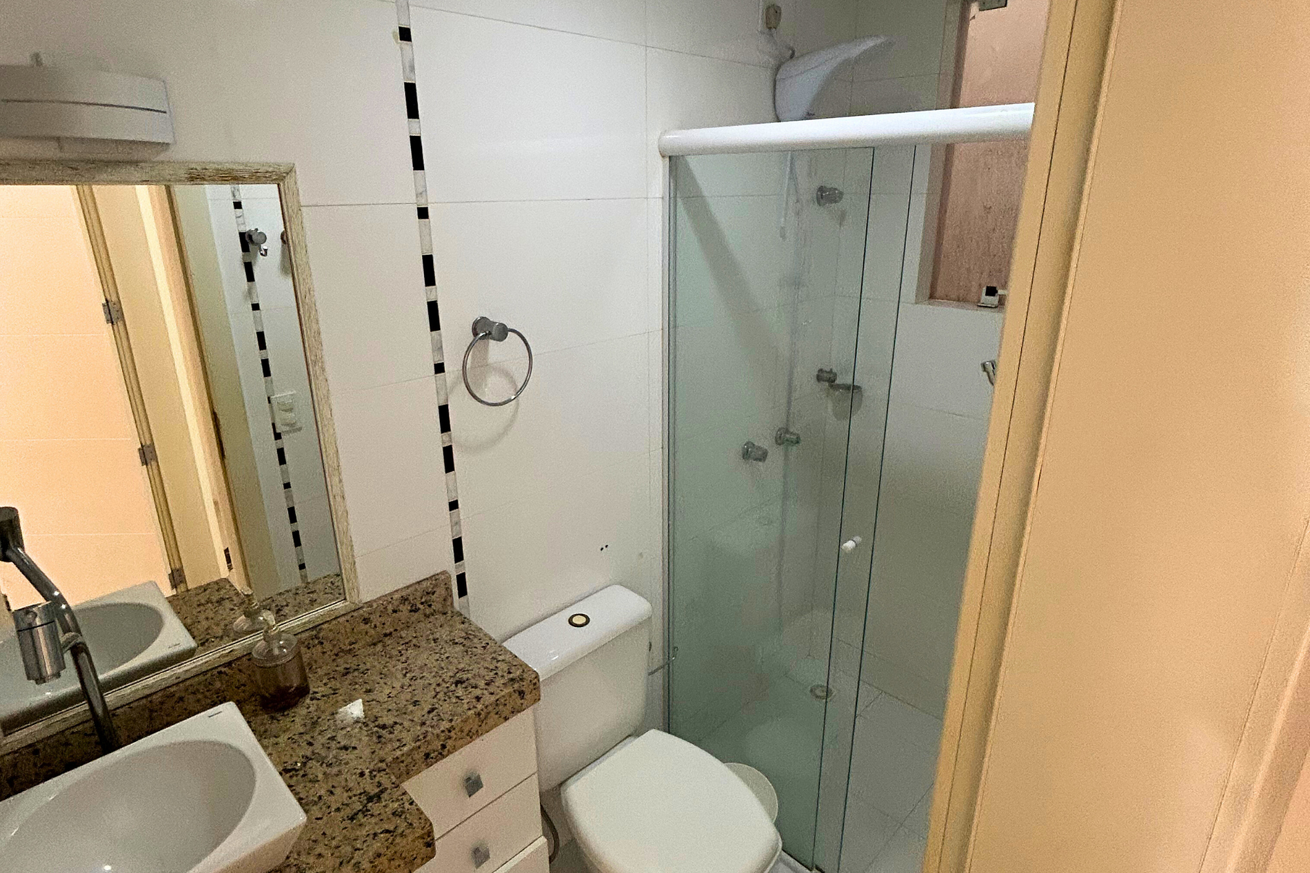 01 Dormitório Suíte com acomodação para 03 pessoas, sendo: 02 camas box de solteiro e 01 cama auxiliar. Este dormitório está equipado com ar-condicionado split.