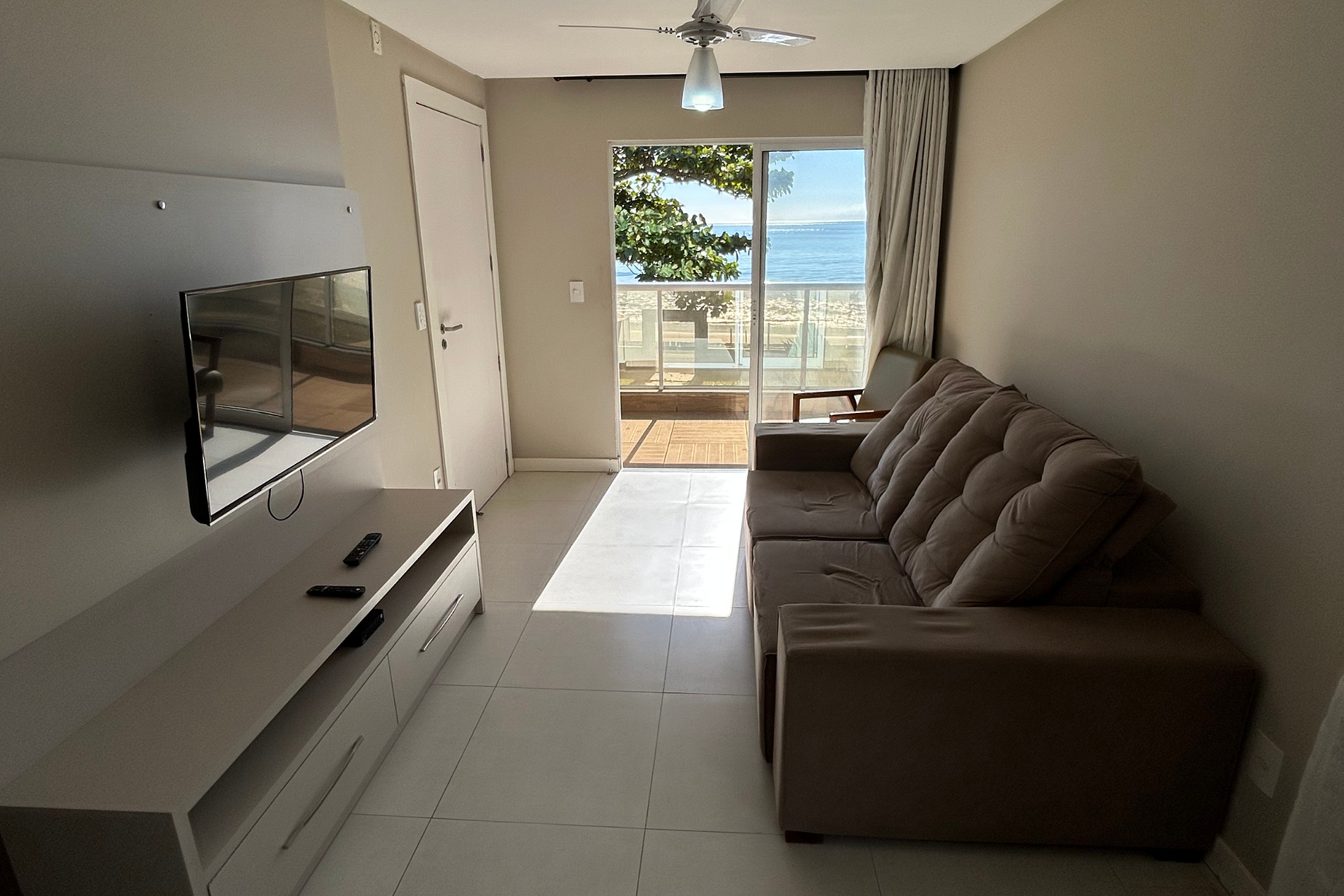 Apartamento no 1º andar, frente, com dois dormitórios e com vista para o mar, sendo: