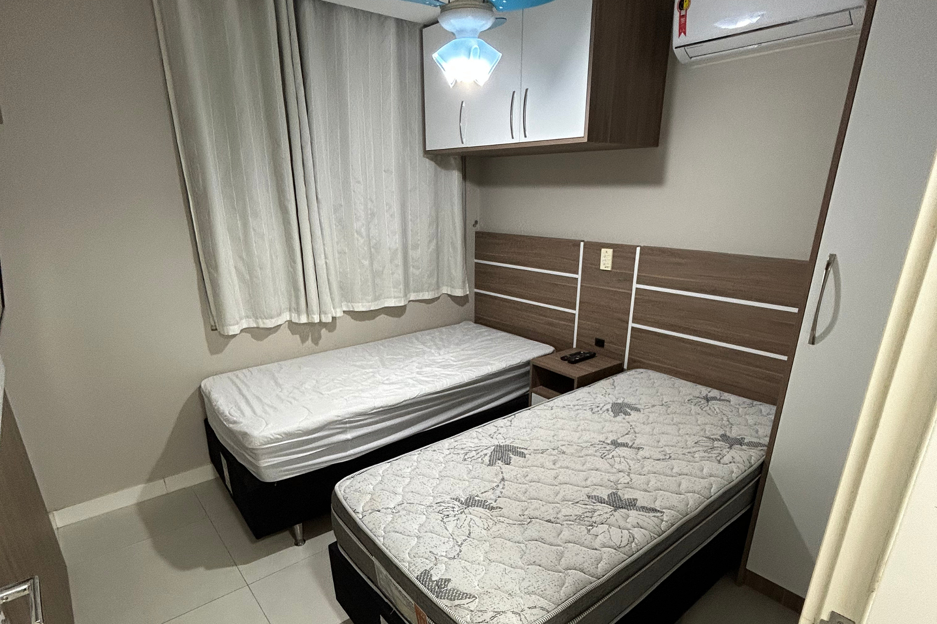 01 Dormitório com acomodação para 02 pessoas, sendo: 02 camas box de solteiro. Este dormitório está equipado com ar-condicionado split e ventilador de teto.