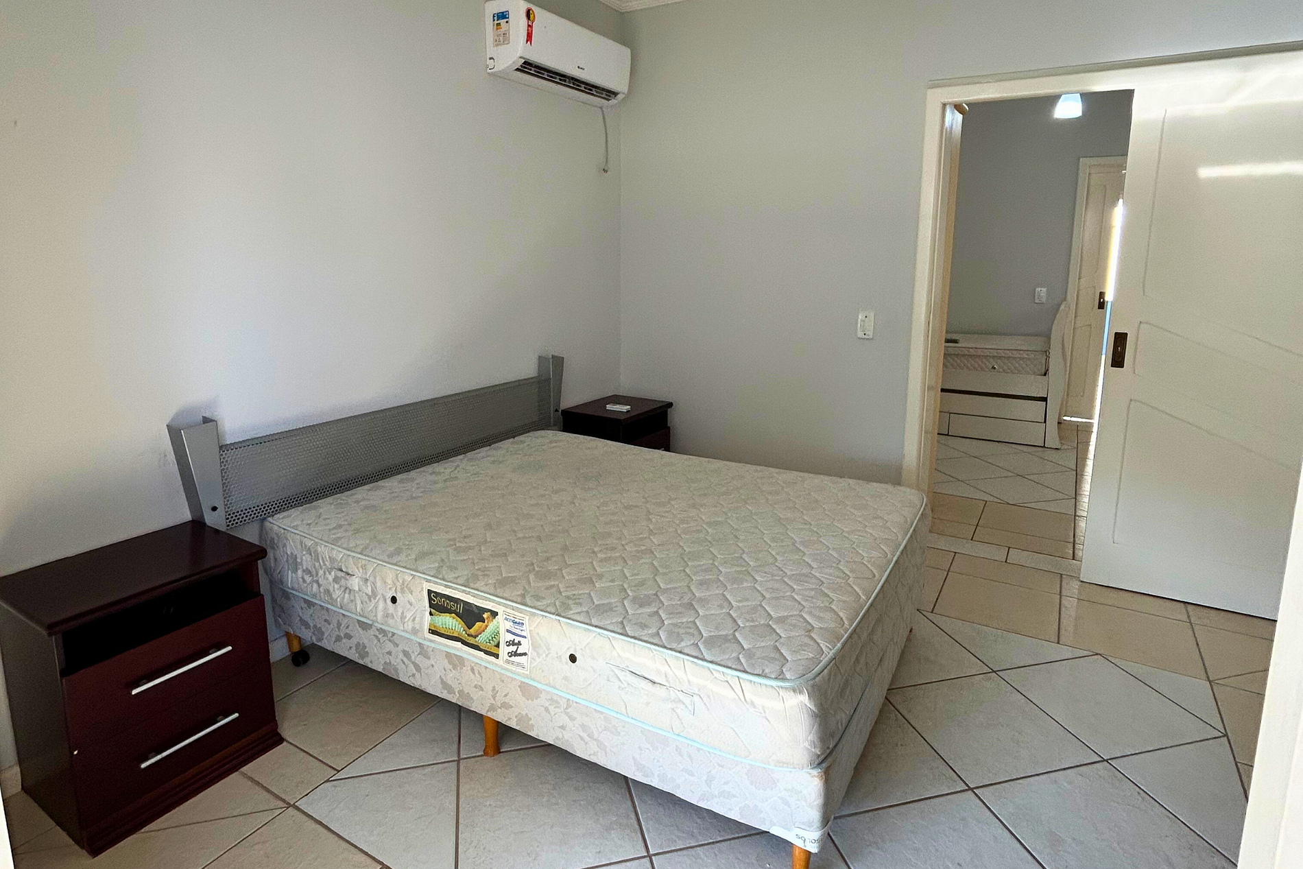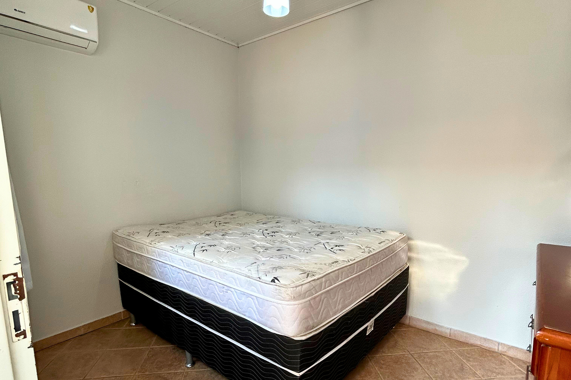 01 Dormitório com acomodação para 02 pessoas, sendo 01 cama box de casal. Este dormitório está equipado com ar-condicionado split.