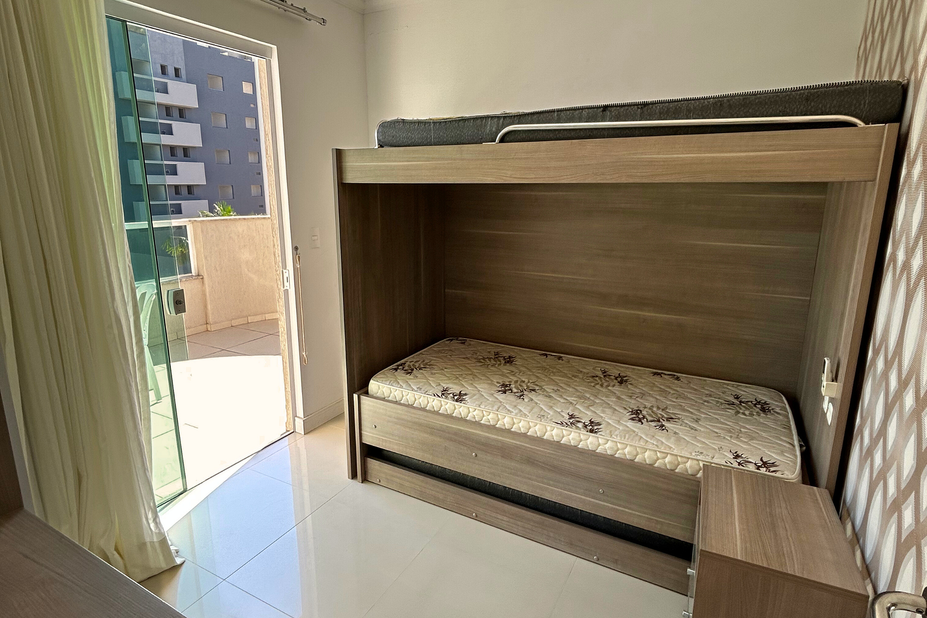01 Dormitório com acomodação para 03 pessoas sendo: 01 triliche. Este dormitório está equipado com ar-condicionado split. Contém acesso para área externa.