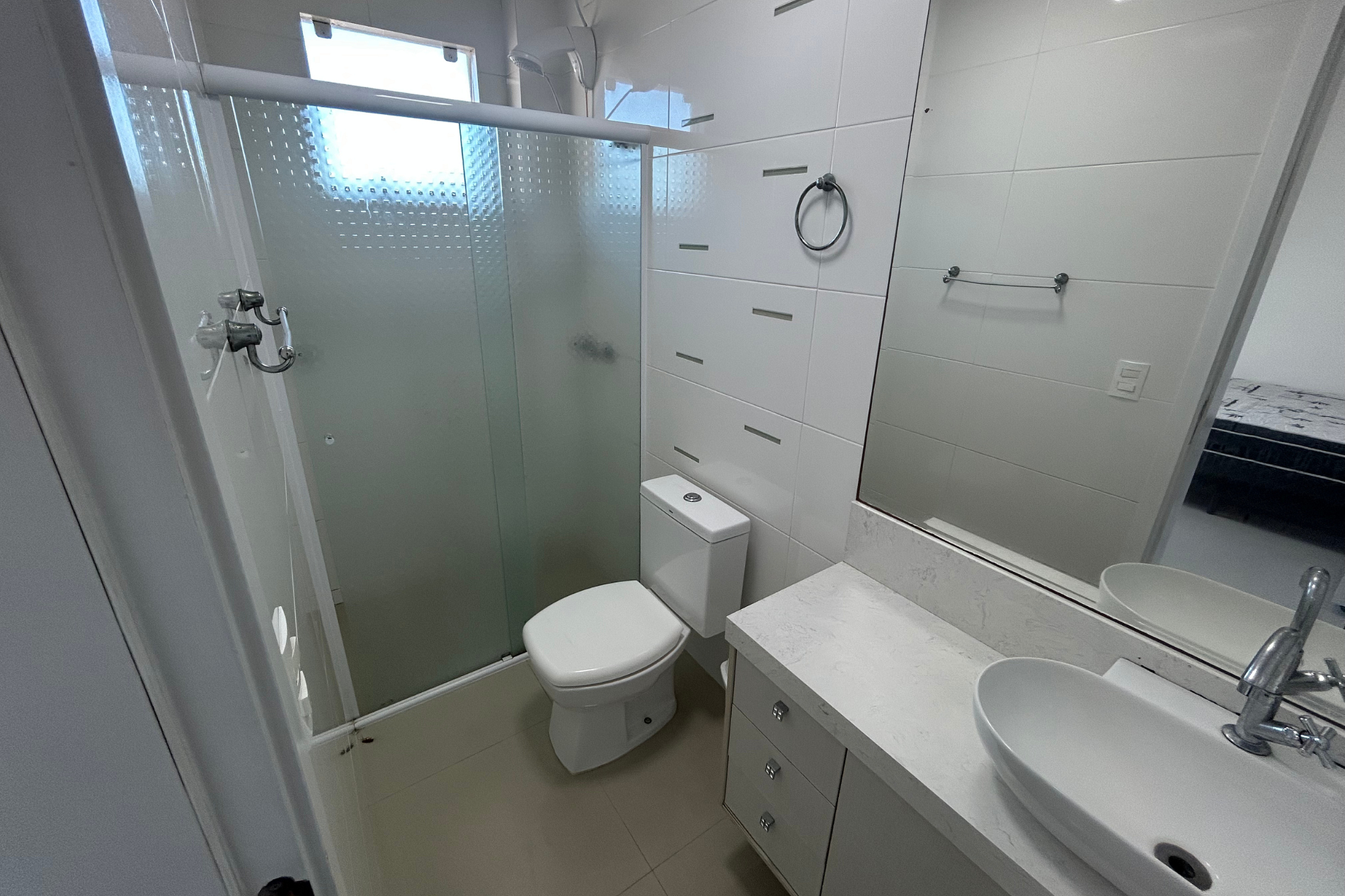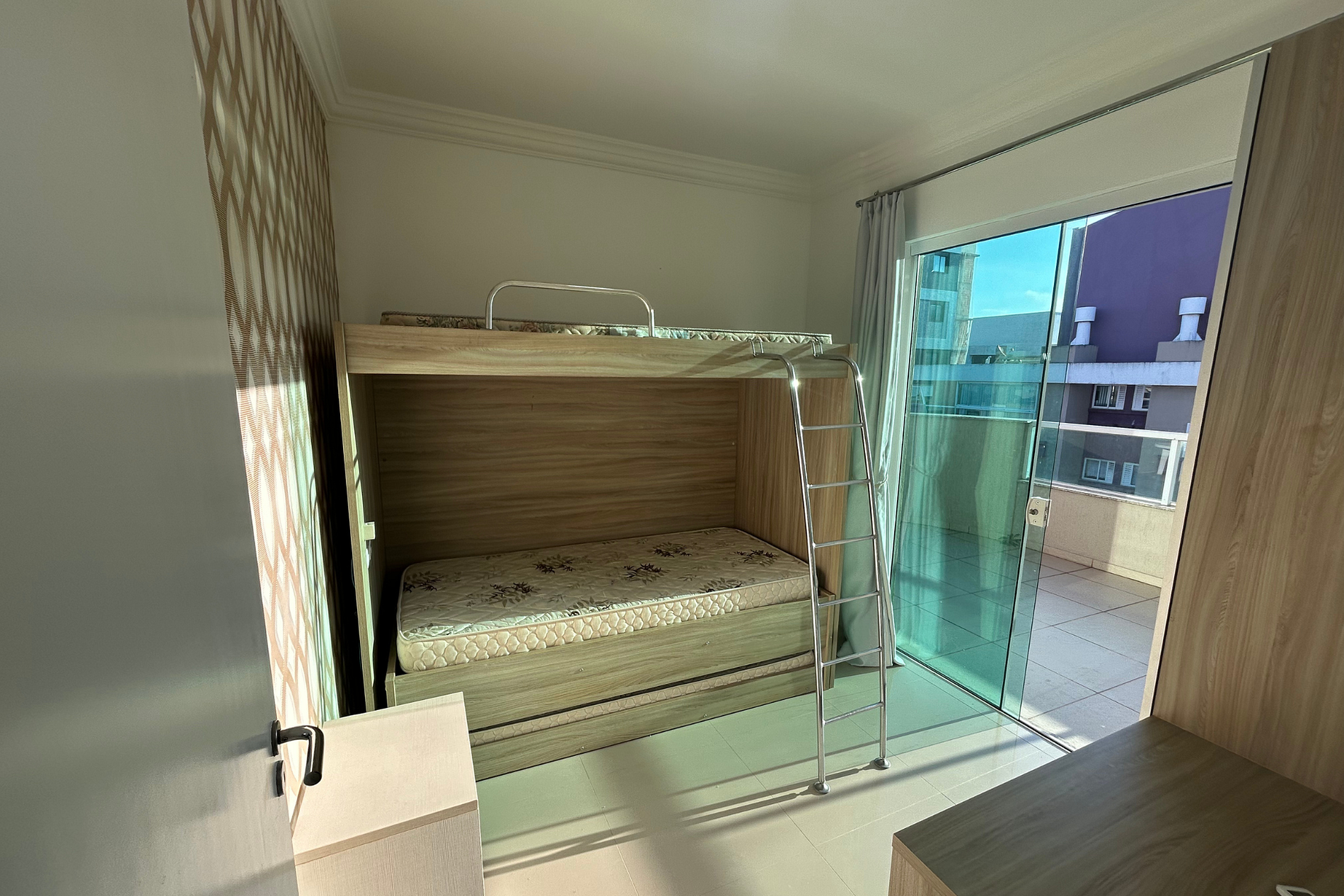 01 Dormitório com acomodação para 03 pessoas sendo: 01 triliche. Este dormitório está equipado com ar-condicionado split. Contém acesso para área externa.