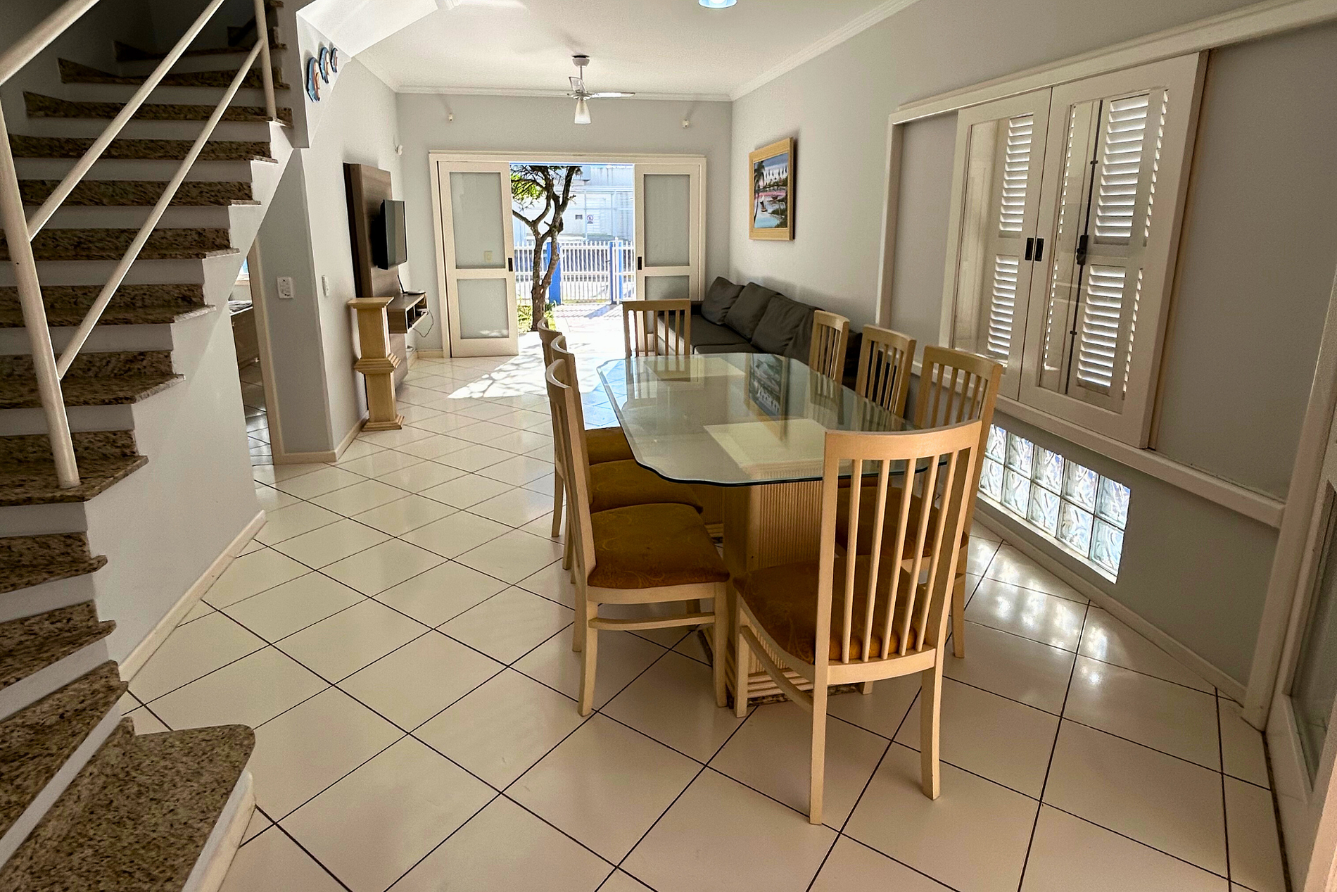 *Casa de dois pisos com quatro dormitórios, sendo: Piso Térreo: 01 Dormitório suíte com acomodação para 03 pessoas, sendo: 01 cama de casal com estrutura de madeira com colchão de espuma e 01 cama box de solteiro. Este dormitório está equipado com ventilador de teto e ar-condicionado split. Sala de estar com sofá de 06 lugares, TV com parabólica e ventilador de teto. Sala de jantar com ventilador de teto e mesa com 08 cadeiras. Cozinha equipada com geladeira duplex, fogão de mesa com 04 bocas, microondas, forno e utensílios básicos de cozinha. 01 Lavabo. Área de serviço com máquina de lavar roupas e dispensa. Piso Superior (acesso por escada): 01 Dormitório Suíte com acomodação para 02 pessoas, sendo: 01 cama box de casal. Este dormitório está equipado com ar-condicionado split, ventilador de teto e acesso para sacada. 01 Dormitório Suíte com acomodação para 02 pessoas, sendo 01 cama box de casal. Este dormitório está equipado com ar-condicionado split e ventilador de teto. Sala de apoio com acomodação para 03 pessoas, sendo 01 bicama e 01 colchão extra de solteiro. Este ambiente está equipado com ventilador de teto. Área externa: 01 Dormitório com acomodação para 02 pessoas, sendo 01 cama box de casal. Este dormitório está equipado com ar-condicionado split. 01 Banheiro Social. Ampla área externa com churrasqueira, mesa plastica com 06 cadeiras, pia e 01 ducha para banhistas. Capacidade para 12 pessoas. 04 vagas de estacionamento privativas descobertas no pátio fechado. Este imóvel está equipado com internet/Wifi - Internet oferecida como cortesia do imóvel, não está inclusa no valor da diária, sujeita a oscilações e indisponibilidades. Permite animais de pequeno porte: SIM (Mediante autorização). VOLTAGEM: 220 TAXA DE LIMPEZA: Será cobrado à parte taxa única de limpeza. Distância: 240 metros da praia de Bombas. Localização pelo Google Maps: https://bit.ly/B071-CasaAzul Rua Tie-Sangue, Bairro Bombas, Município de Bombinhas/SC. TRAZER ROUPA DE CAMA, MESA, BANHO E TRAVESSEIROS.
