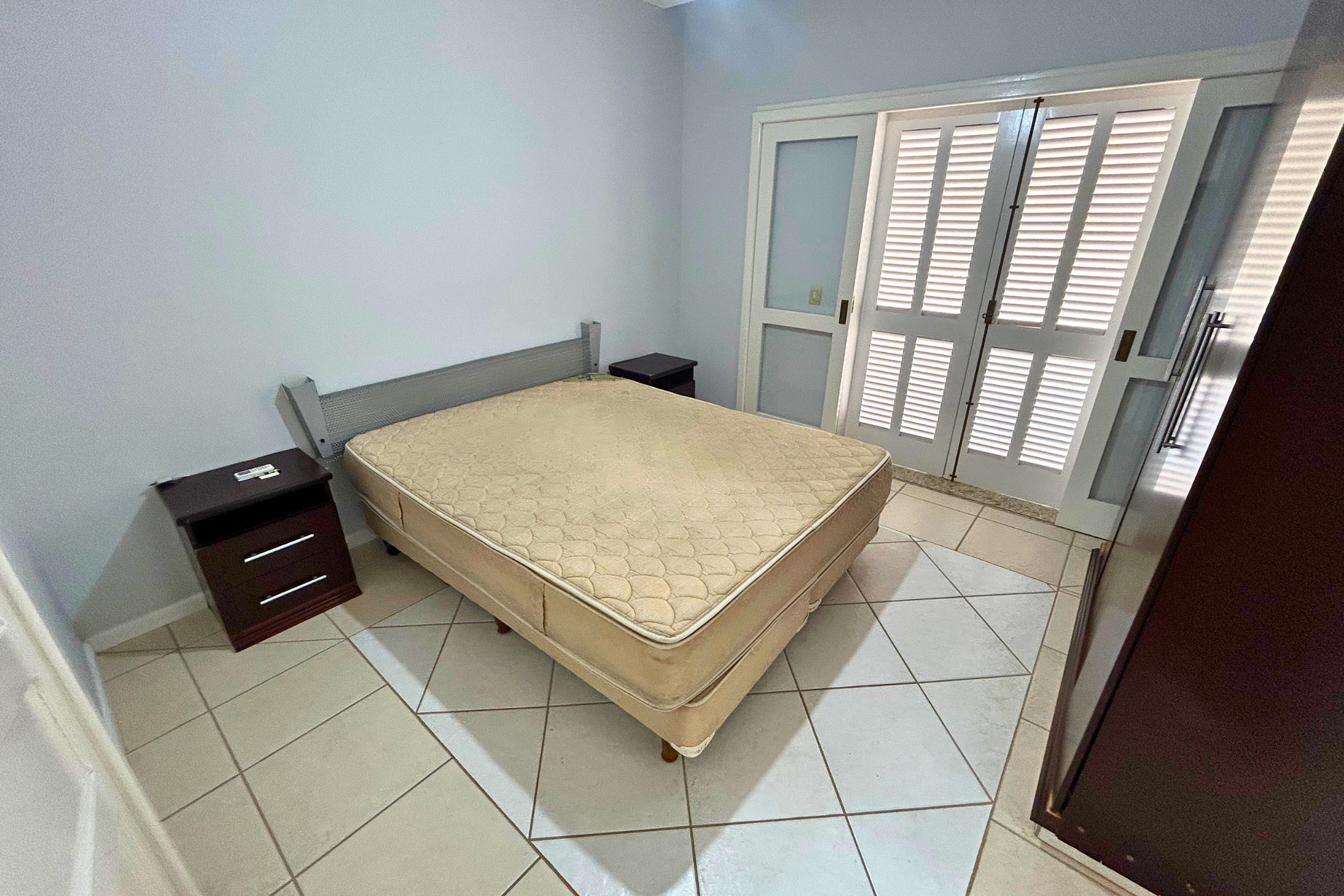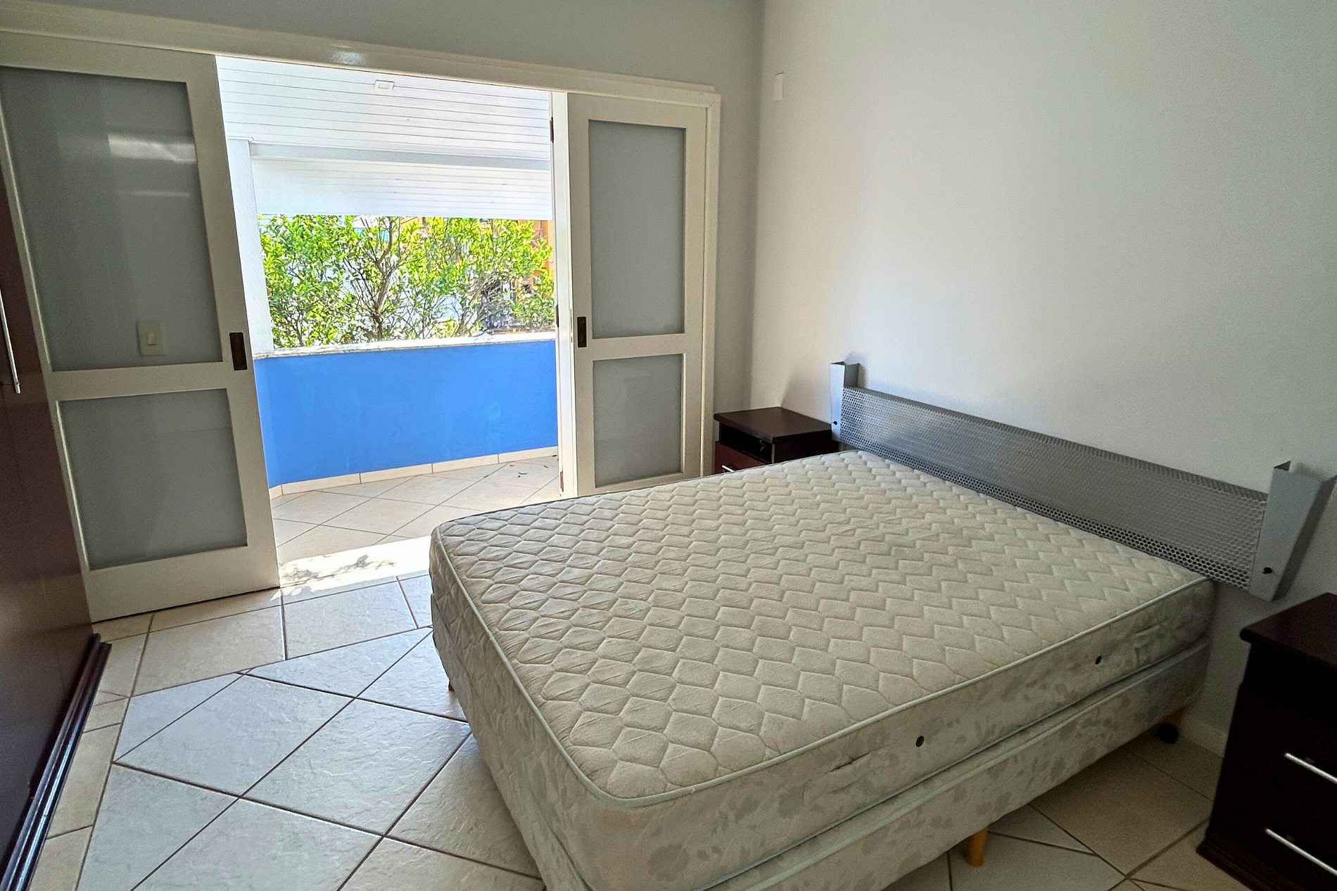 01 Dormitório Suíte com acomodação para 02 pessoas, sendo: 01 cama box de casal. Este dormitório está equipado com ar-condicionado split, ventilador de teto e acesso para sacada.