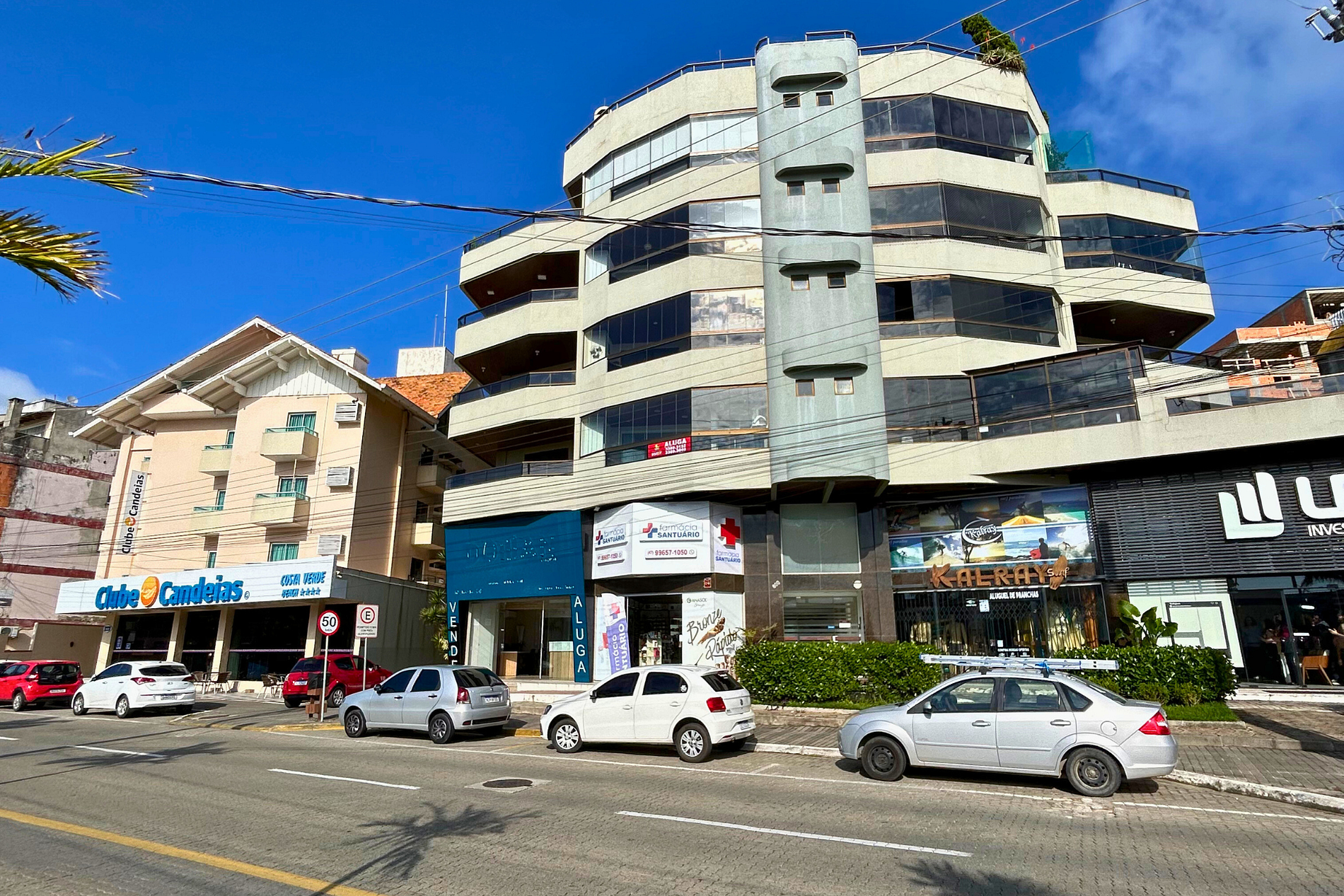 Localizado sobre a avenida principal, próximo ao supermercado e cerca de 50 metros da Praia de Bombas