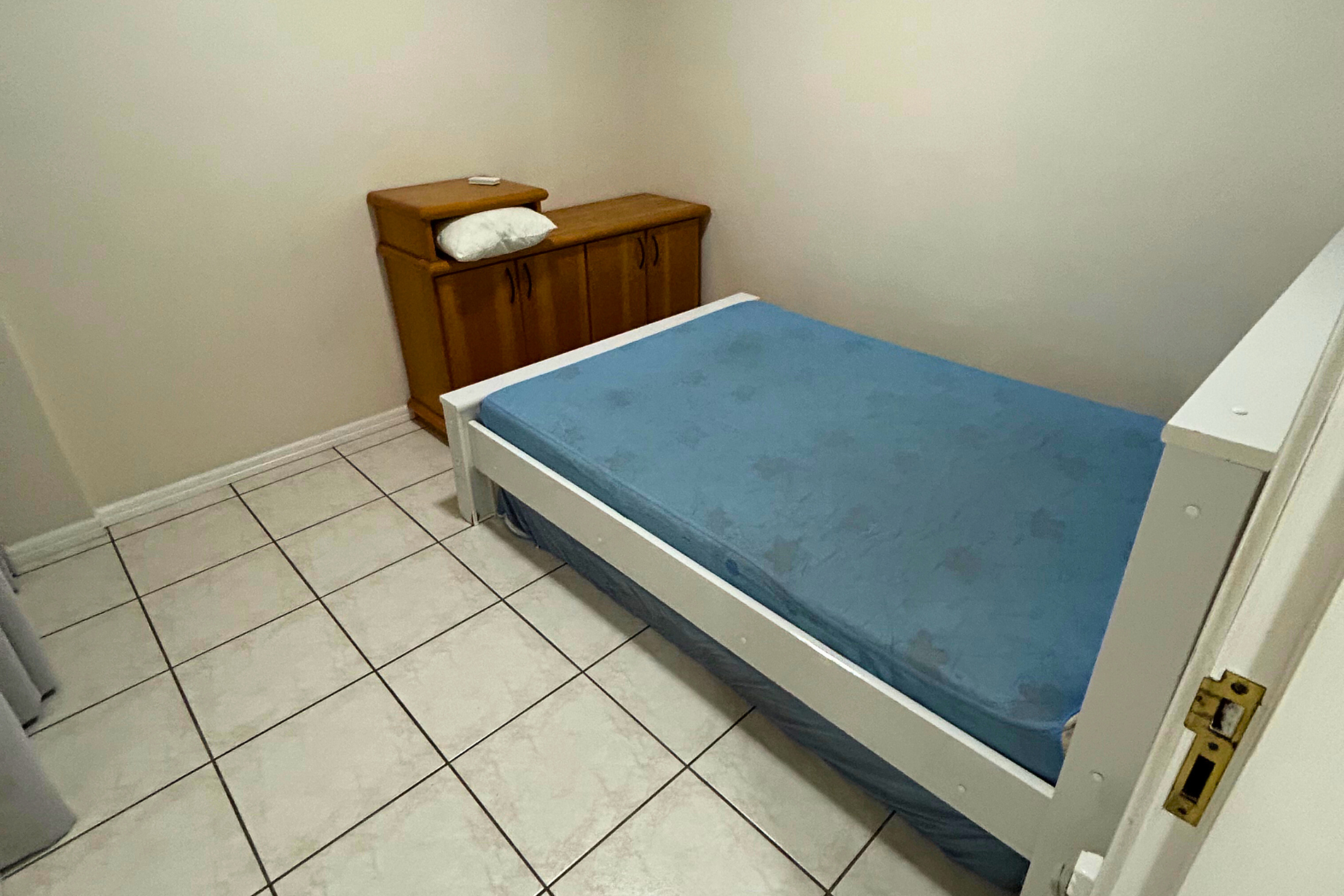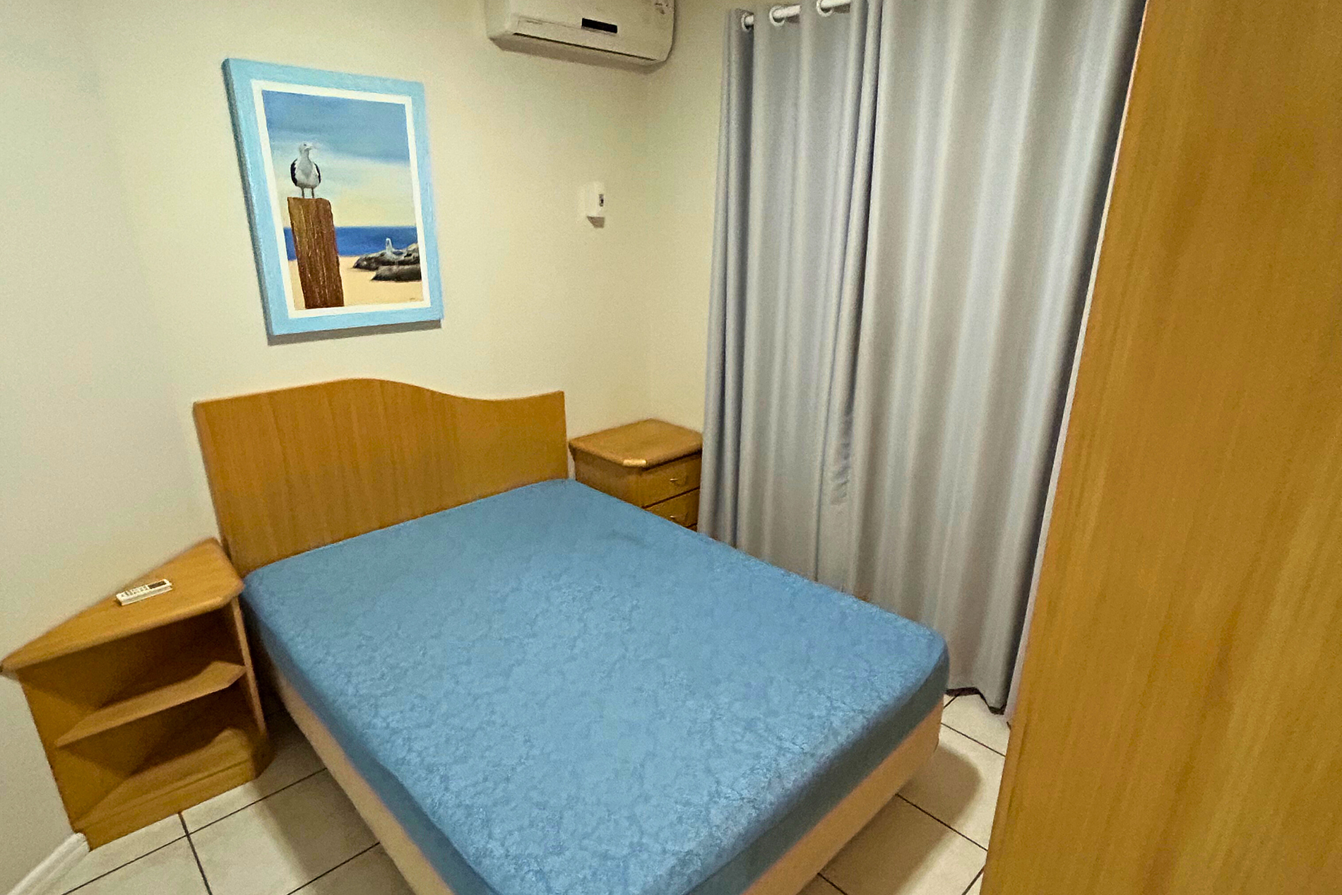 01 Dormitório com acomodação para 02 pessoas, sendo: 01 cama box de casal. Este dormitório está equipado com ar-condicionado split.