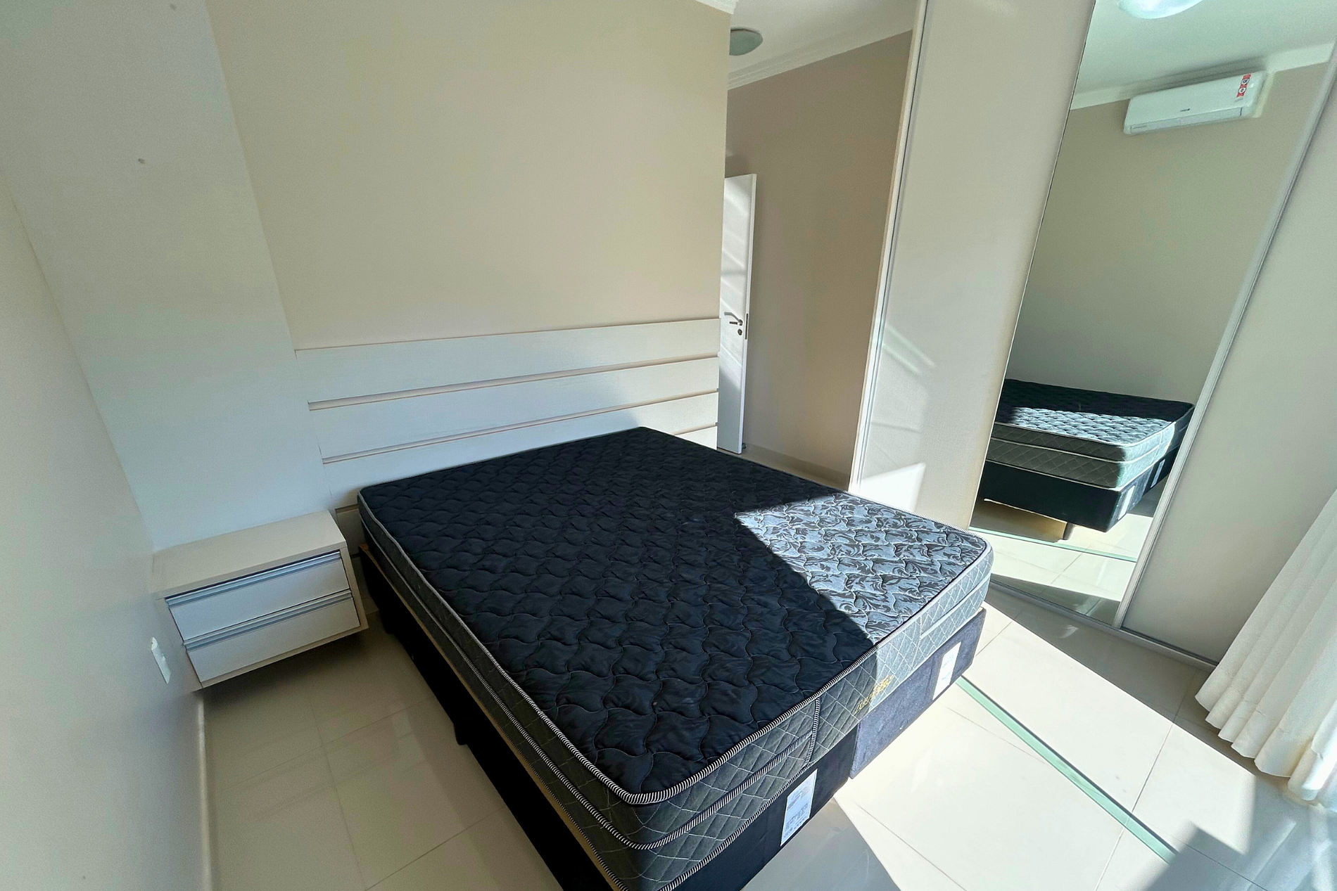 01 Dormitório com acomodação para 02 pessoas, sendo: 01 cama box de casal. Este dormitório está equipado com ar-condicionado split.